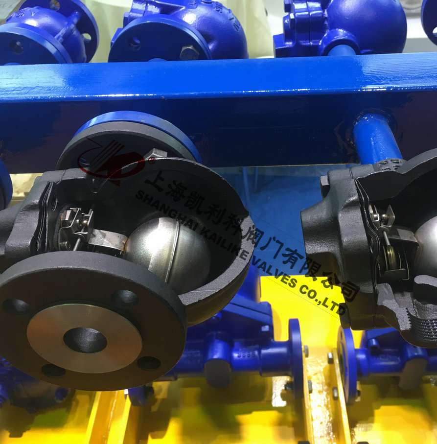 該閥剛啟動(dòng)時(shí),自動(dòng)排空氣裝置迅速排除系統(tǒng)中不凝結(jié)氣體,當(dāng)蒸汽和熱凝結(jié)水進(jìn)入后,閥腔內(nèi)溫度隨著升高,排空氣裝置自動(dòng)關(guān)閉,浮球根據(jù)凝結(jié)水水位的變化而作升降,帶動(dòng)杠桿調(diào)節(jié)閥座孔的開度,連續(xù)排放凝結(jié)水。當(dāng)凝結(jié)水停止進(jìn)入時(shí),浮球靠自重下降,驅(qū)使杠桿帶動(dòng)閥芯關(guān)閉排水閥座孔。